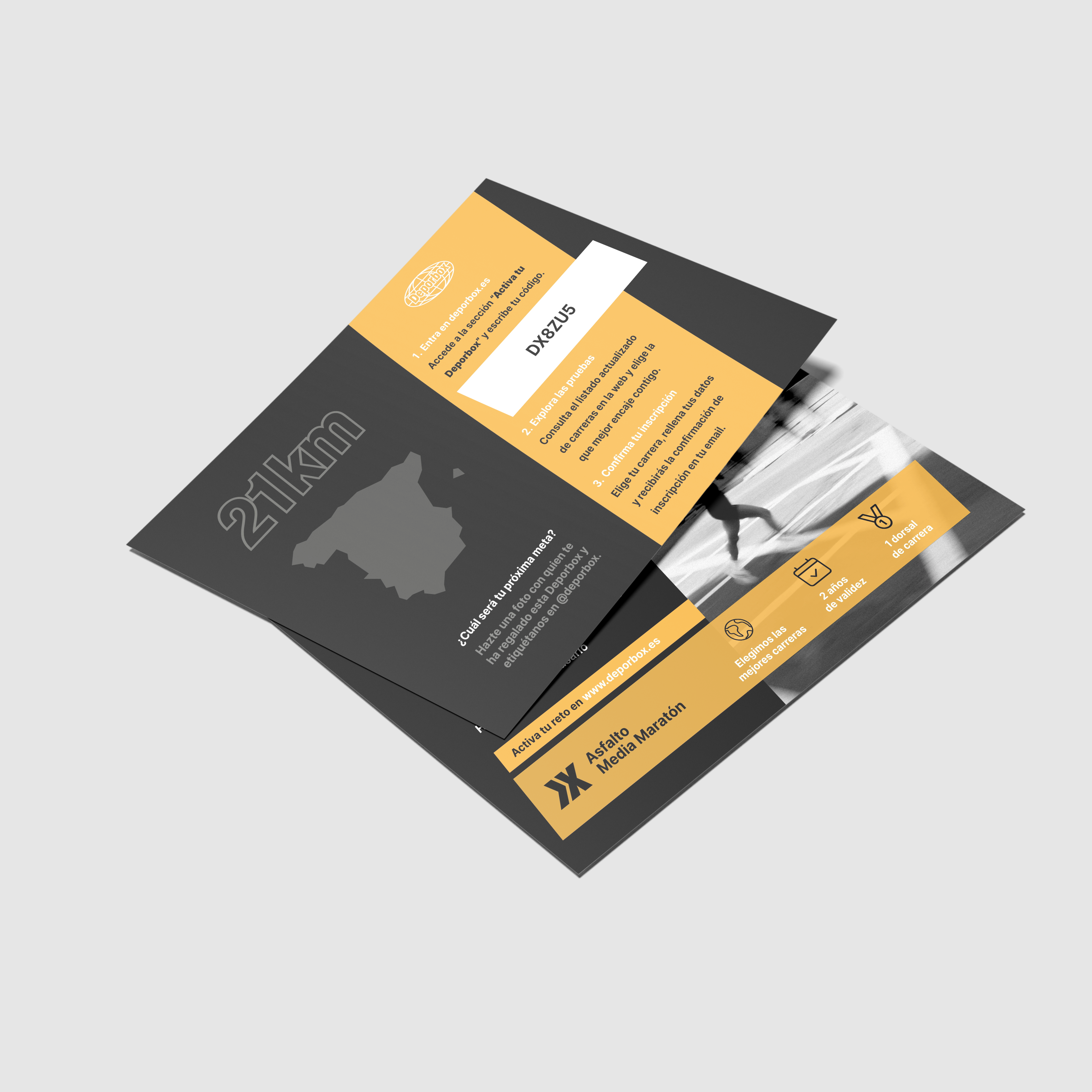 Una inscripción a 21K (media maratón) en asfalto sin complicaciones: compras el pack, lo recibes al instante y lo entregas en PDF (impreso o por WhatsApp).